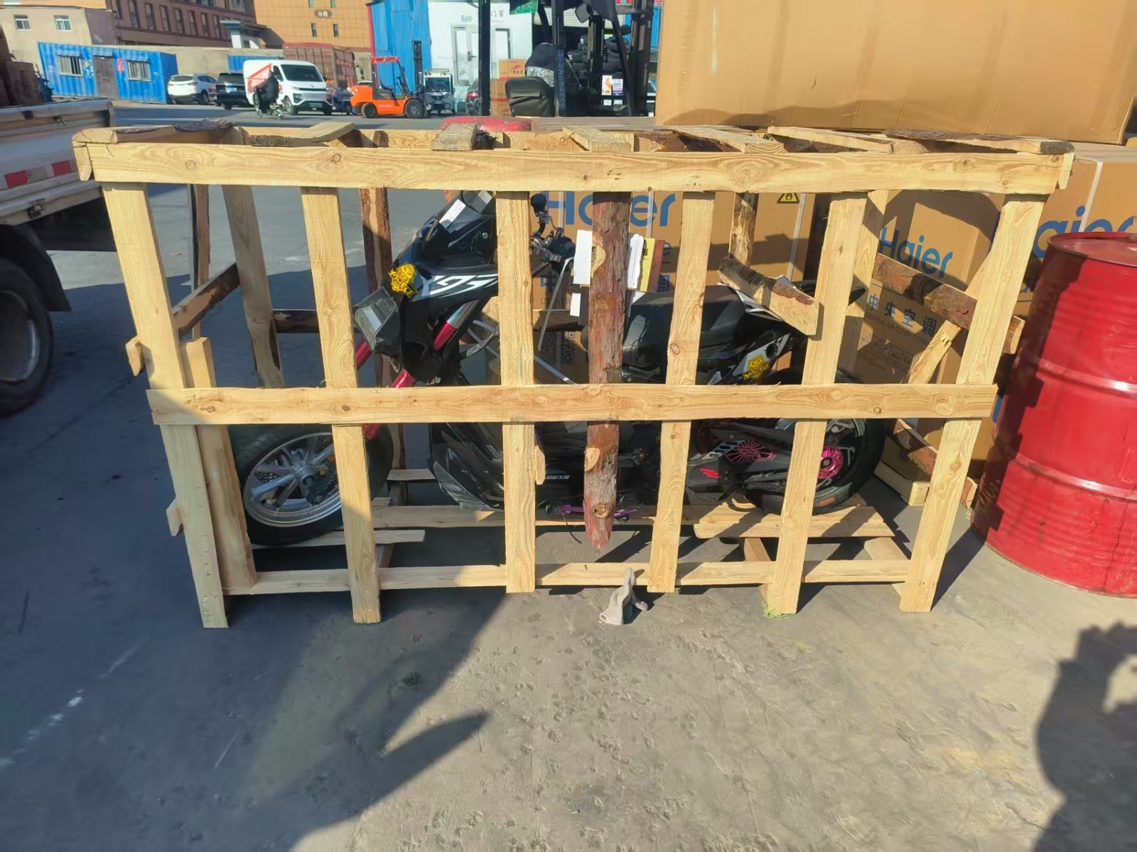 貨物包裝:托盤、木箱、紙箱訂做,氣泡膜、保溫毯、鐵皮柜包裝。